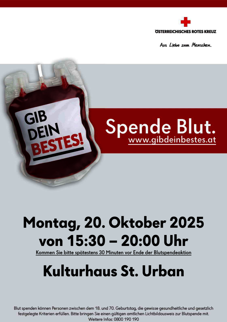 Blutspendeaktion in St. Urban – Ihre Hilfe zählt!